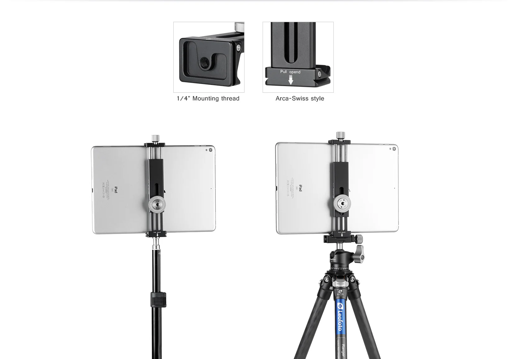 The Leofoto PC-190/230 is a versatile accessory for attaching an iPad or tablet to a tripod for stable video and photo shooting.